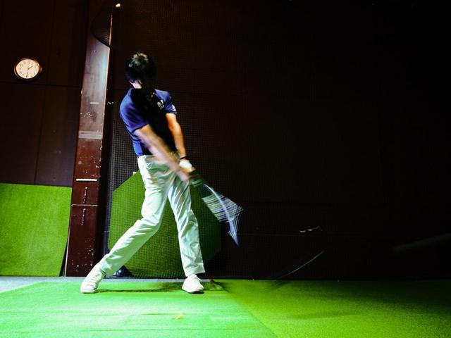 さて、ここからが核心部分。続いて、アマチュアの使用を想定して、インパクトで思い切りフェースが開くように打ってもらった。ダウンでフェースが返ってこず、いわゆる“振り後れ”の状態でのインパクト。右に出たボールが右OBまで飛んでいく。そんな弾道を想定して、打ってもらう。