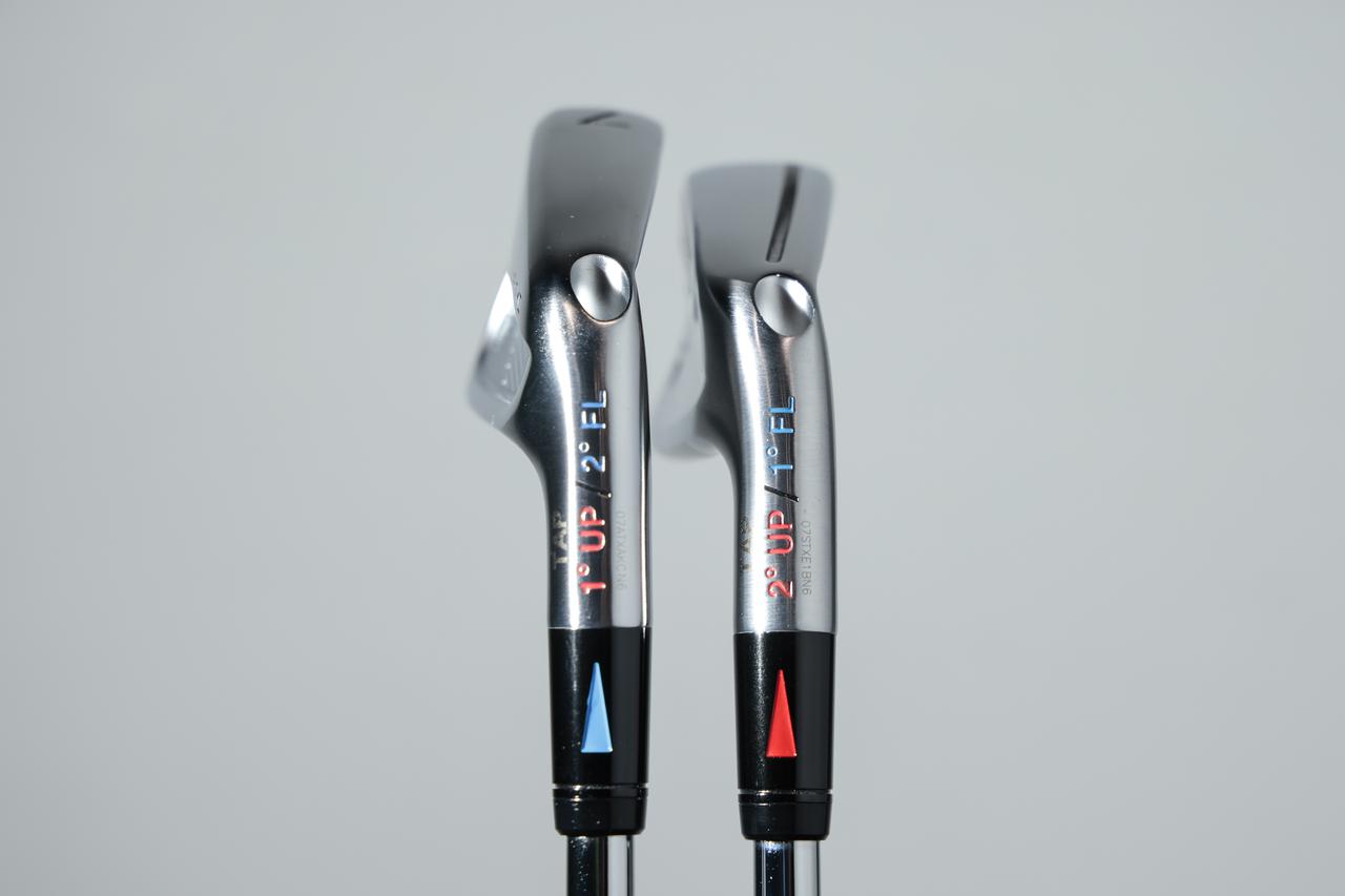 カスタムオーダーでライ角を選べるようになった、テーラーメイドのアイアン。ライ角調整可能なのは、「SIMグローレ」「P770」「P790」「P7MC」「P7MB」の5モデルで、ゴルフ5各店舗に±2度の範囲でアップライト・フラットに変更可能な試打用のヘッドが揃っている。(※P7MBに限りライ角違いの試打用ヘッドはありません)