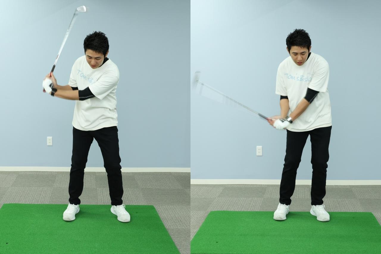 画像: 体を使わず手で打ってしまうと、クラブが鋭角に下りてしまいがちだという