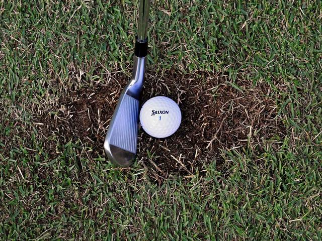 ただし、マナーが悪いゴルファーがいて目土されていない場合や、深いディボット跡の場合は「ミドルアイアンで打ちましょう」とのことだ。