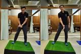「側屈の動作は体側を伸ばす側と縮める側の柔軟性が大切です。左側屈が入るテークバックでは右側の体側が伸ばされ、右側屈が入るフォロー側では左側の体側が伸ばされるので壁を使ったストレッチで体側の柔軟性を保ちましょう」(小楠トレーナー、以下同)