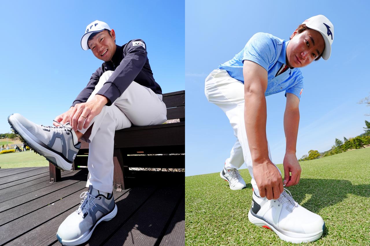 前モデルから新作に移行した選手は、「前のよりも歩きやすい。クッション性があるので18ホール回っても疲れない。スウィング時はソールの安定感があるので安心して振れる。完璧です」(鈴木晃祐)「よりクッション性が高くなり前作以上に歩きやすい。スウィング時には安定感が高まって足の力をスムーズに使える」(米澤蓮)