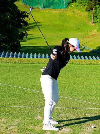 大会前日はプロアマ後に遅い時間まで特訓に励んだ川﨑。試しにやってみたという片手打ちの効果が初日のショットに表れた