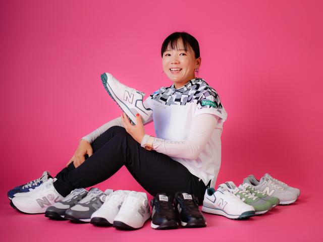 ニューバランスの「574 v4 SL BOA 」を履く有村智恵プロ。契約は2016年に始まったが、出合いはその少し前にさかのぼる。