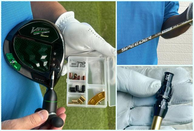 「このシャフトは極端に走らず、インパクト付近でヘッドをグッと『押し出してくれる』動きがあります。この押し込み感が、折り紙ソールを活かし、ヘッド機能が持つパフォーマンスをフルに発揮してくれます。具体的には、『スピーダー NX ゴールド(50SR)』を45.75インチ程度のやや長めのレングスで組むのも良いかと思っています。このセッティングなら、ヘッドスピード40~43m/s程度のゴルファーが、シャフトのしなりを最大限に利用し、中弾道ながらもしっかりとキャリーが稼げる安定感抜群のドライバーに仕上がります。ウェイトポジションは、前方ウェイト(フェース裏)はノーマルで触らず、後方のバックウェイトを中央で試すのが基本です。この組み合わせで、低スピン性能を活かしつつ、方向性を安定させられます。『VATIC Venero』は、風に負けない強い中弾道で、アマチュアゴルファーのゴルフを一段と面白くしてくれるはずですよ」と様々なカスタム性があるが、一度ノーマルポジションで試して欲しいと吉田さん。前方のウェイトは基本的には変更しないというが、クラブバランス調整などには有効とのこと。