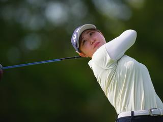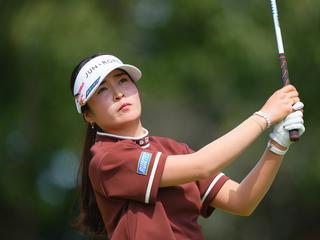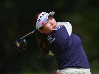 原英莉花、300Y級ド迫力ショットを披露! 「68は初日ならよしッ」凱旋試合は3打差から逆転V目指す