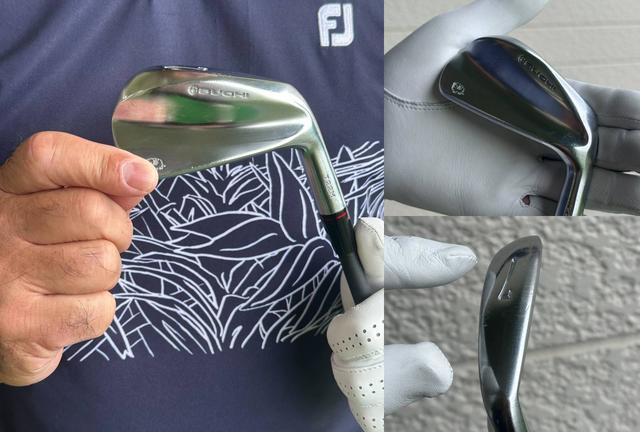 「さらに特筆すべきは、研磨師・田淵正敏さんによる研磨です。彼は、石川遼プロがアマチュア時代のウェッジを削っていたことでも知られる、名工です。このアイアンのソールには、ヒールとトウ側が削られたVソールのような研磨が施されています。これにより、ラフや斜めのライからでもヘッドが抜けやすく、ミスを軽減してくれるんです」とのこと。石川遼がアマチュア時代に使っていたクラブを提供していた『ソリッドコンタクツ社』の後身が『フソードリーム』という今回のアイアンメーカーだ。