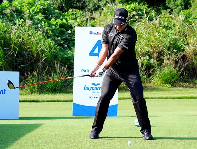 松山英樹のテークバックを見ても、両ひざはほとんど動いていない(撮影/岡沢裕行)