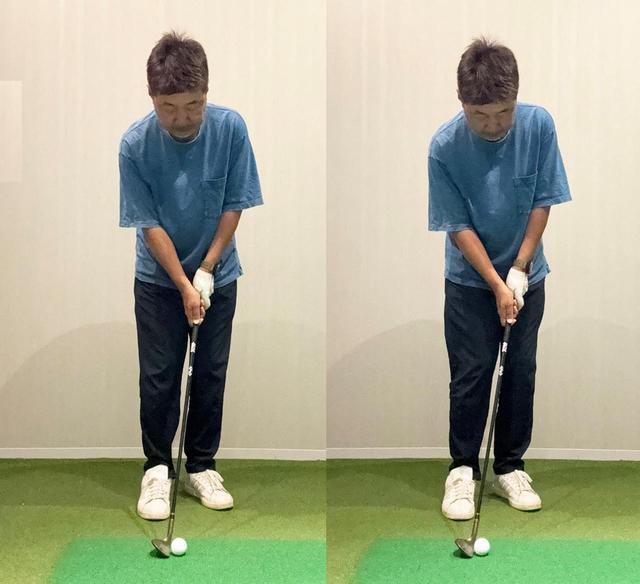 今野プロによると、アドレスとインパクトはほぼ同じ形になるのが理想。左がアドレスで右がインパクト