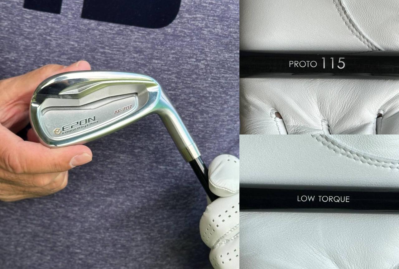 「今回はクオリティの高いエポン『AF‐707』のヘッドと、まだあまり認知されていない『PROTP(プロト)』シャフトです。まずヘッドとしては重量差やフォルムのクオリティ、AFシリーズの中では比較的寛容性の高い、ややストロングロフト気味のアイアンです。低重心設計で球も上がりやすく、打感も非常にソリッドで気持ちの良い打感が多くの方が使用されている理由だと思います。このヘッドに挿すシャフトは比較的なんでも合いやすいのですが、最近入ってきた『PROTO(プロト)』シャフトにしました。これは昨今の『硬軽』とは真反対の『重軟』のシャフトです。重量帯は95/115/130の3種類があり、今回はマッチ層が広い115を選びました」