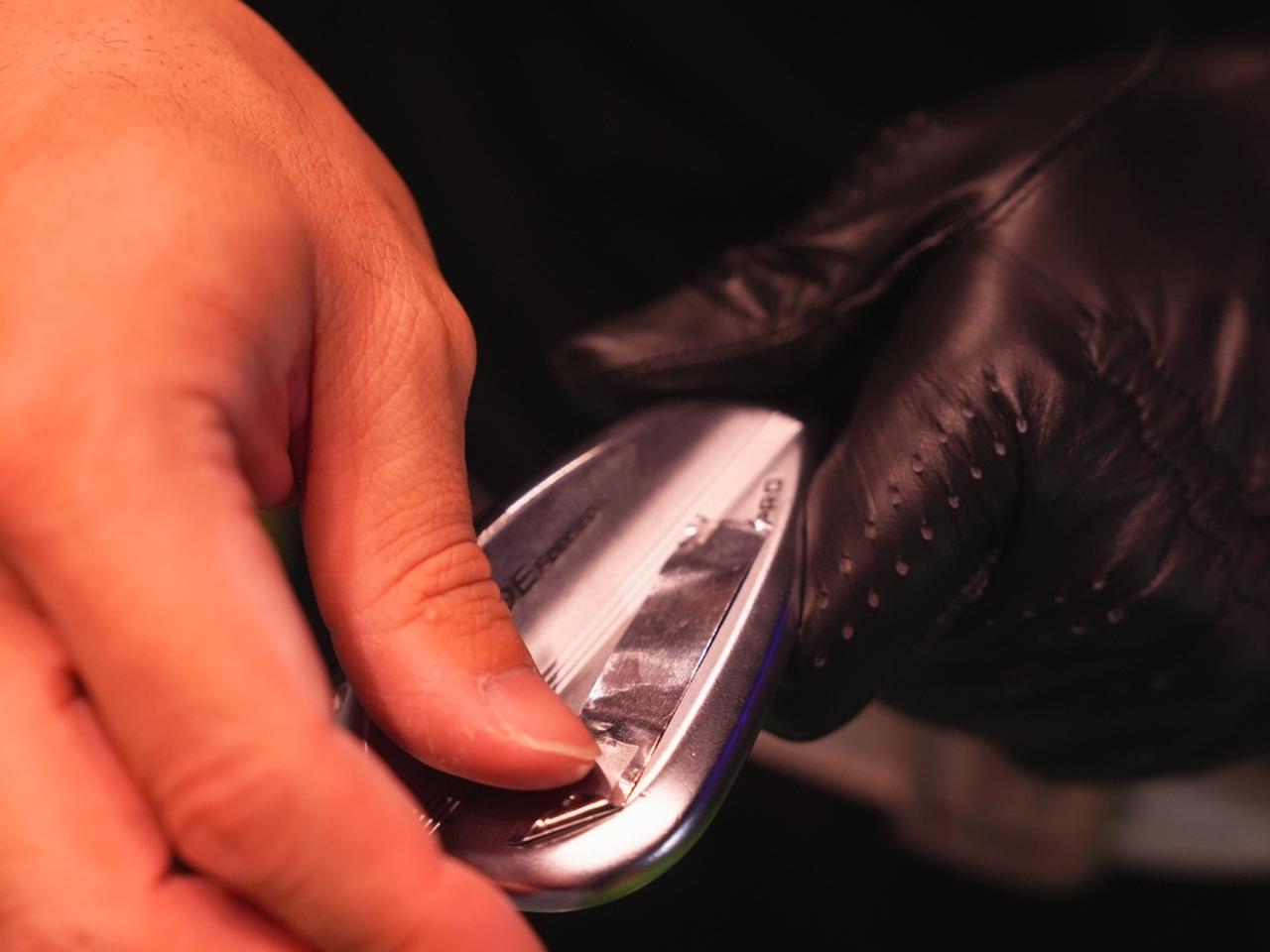 「今回の貼り方にランキングを付けるなら、1位はアイアンのヒール下、2位はウェッジのバックフェース上。この2つは大いにアリです」と松本プロ。