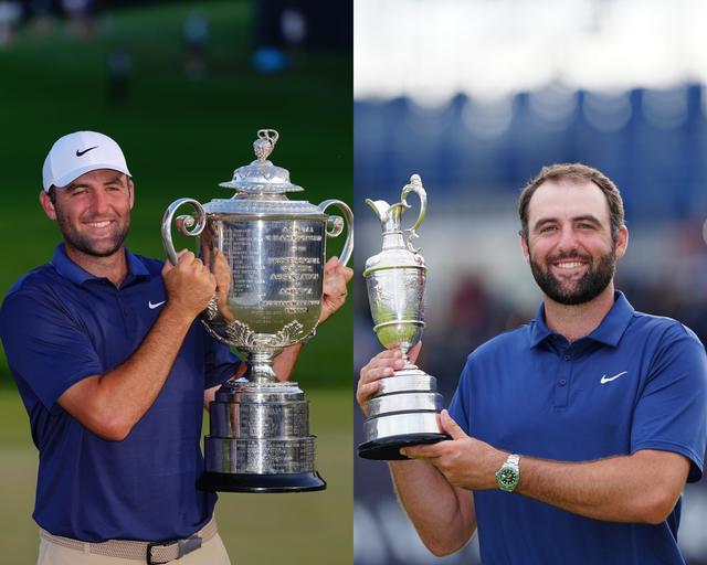 25年全米プロ(左)と全英オープン(右)を制覇し、キャリアグランドスラムまであとは全米オープンを残すのみとなったスコッティ・シェフラー(撮影/岩本芳弘、姉崎正)