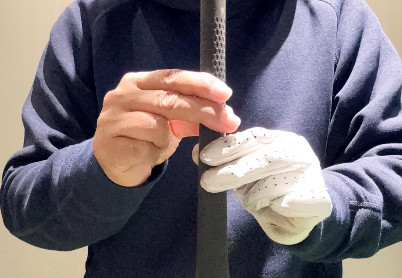 左右の親指・人さし指・中指の指先でクラブを握り、小さな振り幅で振ってみるとヘッドを走らせる感覚がわかる