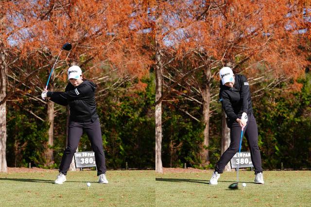 藤本選手も「体が浮き上がらないようにし、上下運動を抑えること」とスウィングのポイントを話しますが、インパクト付近で頭の高さが高くなる場合は気をつけるポイントです。