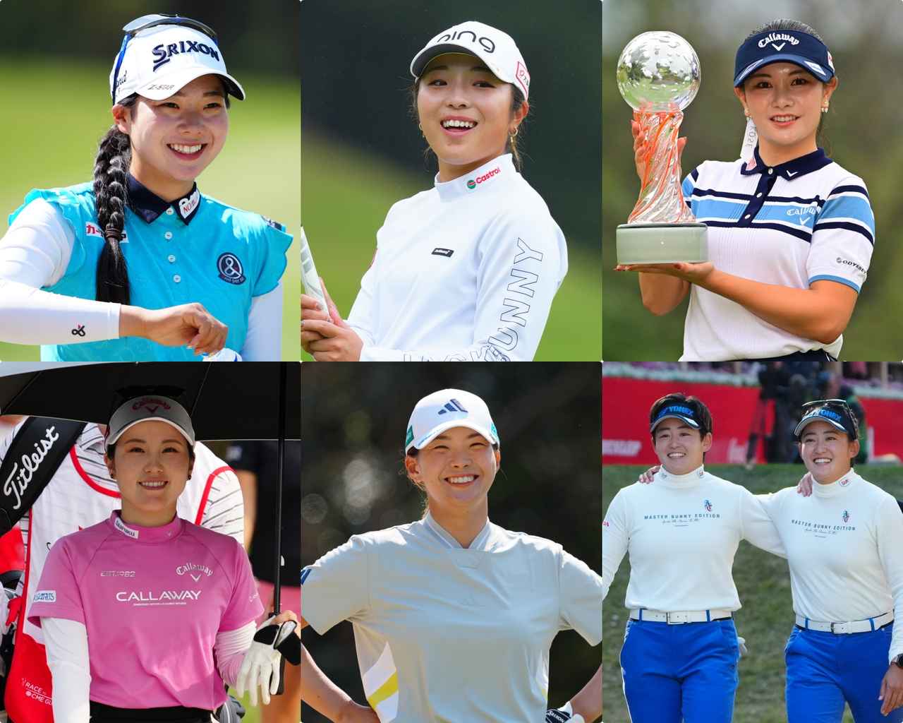左上から時計回りの順で、笹生優花・佐久間朱莉・西郷真央・原英莉花