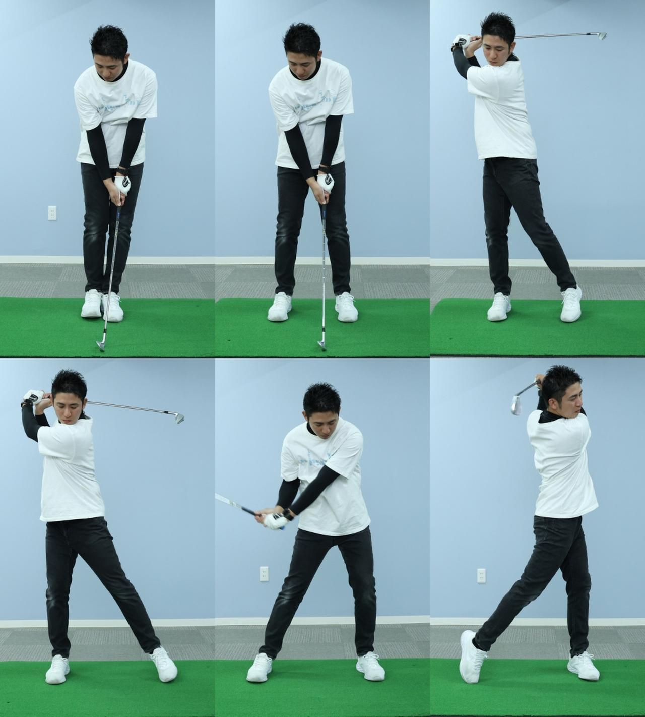とくにビギナーの場合、大げさにやるくらいじゃないと大体縮こまったスウィングになってしまうことが多いです。もちろんケースバイケースで、動きが過剰な方も中にはいます。ただレッスンの経験上、縮こまっている方のほうが多い印象ですね」