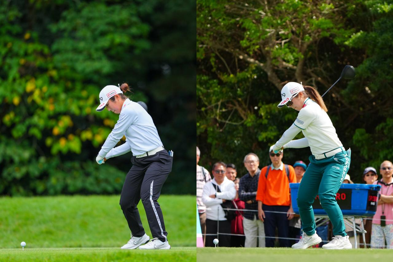 回転の支点を高くし、つかまったフェードが打てるよう改善した(左は2025年、右は2026年の開幕戦「ダイキンオーキッドレディス」)