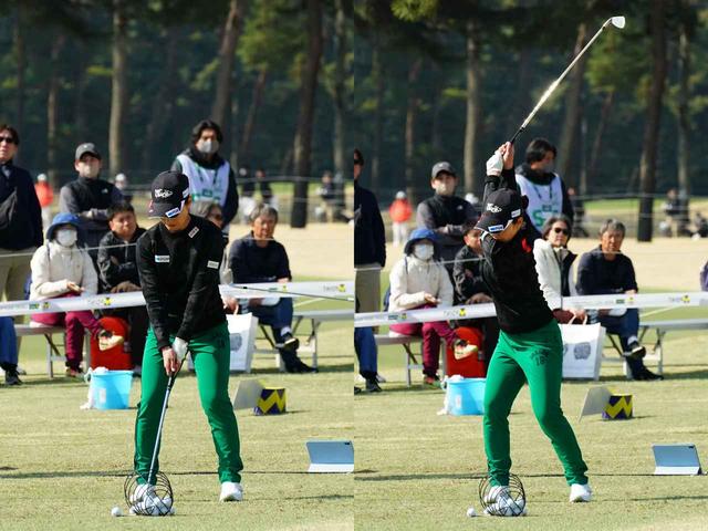 佐久間朱莉選手は縦の動きを取り入れることで入射角を確保し、ロフト角を立てながらダウンブローで打つため、重心の高いマッスルバックアイアンを使いこなしています。一方、笠選手は入射角が緩やかでハンドファーストも強くないため、打点がフェースの下部からセンターに集まります。そのため、低重心のアイアンとの相性が抜群なのです。自分のスウィングにマッチしたアイアンを使うことの大切さを、彼女のプレーが証明してくれました。