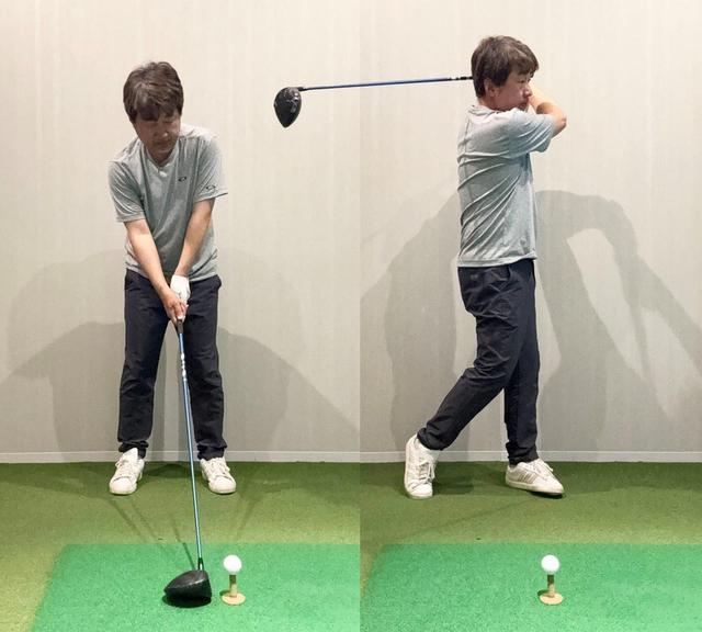 左足を開いた場合は股関節のロックが解けるので、一気にフィニッシュまで振り抜きやすくなり、ヘッドスピードも上がります。左側にスペースができることで、インパクトゾーンが長くなり、ボールを押し込みやすくもなるそうです。また体重も左足に乗るので、フィニッシュが安定し、パワーも最大化できるということです。