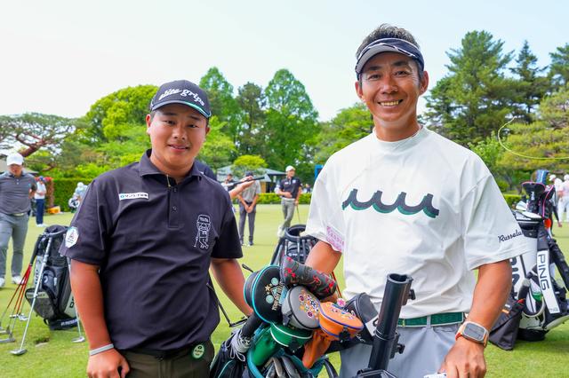 緊急来日してキャディを務める中村と、あどけない顔つきだった昨年とは違い何だか大人になった金ちゃん